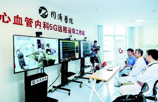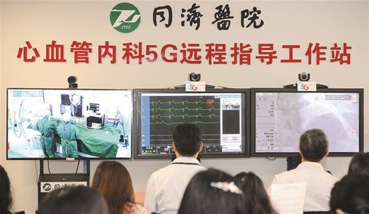 图为:昨日,武汉同济医院心血管内科专家利用5G技术远程指导枝江医生手术。楚天都市报记者王永胜摄