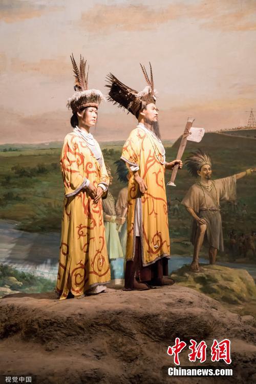 - 良渚先民的服装以麻织物为主,很可能已经使用苎麻作为衣料,像国王和贵族甚至还使用丝绸(科技手段发现)。图为良渚博物馆内展示的用高科技手段复原的当时服装。郭辉 摄 图片来源:视觉中国