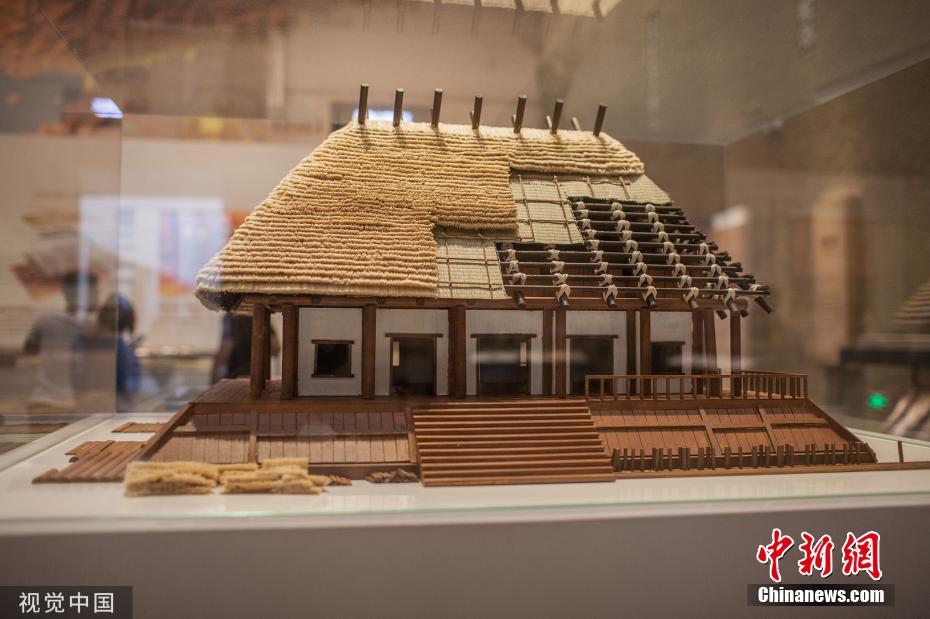 - 良渚文化的建筑主要分为两种:一种是建在台基上的宫殿建筑,另一种是建在平地上的民居建筑。图为杭州良渚博物院内的良渚时代建筑模型。吕上元 摄 图片来源:视觉中国