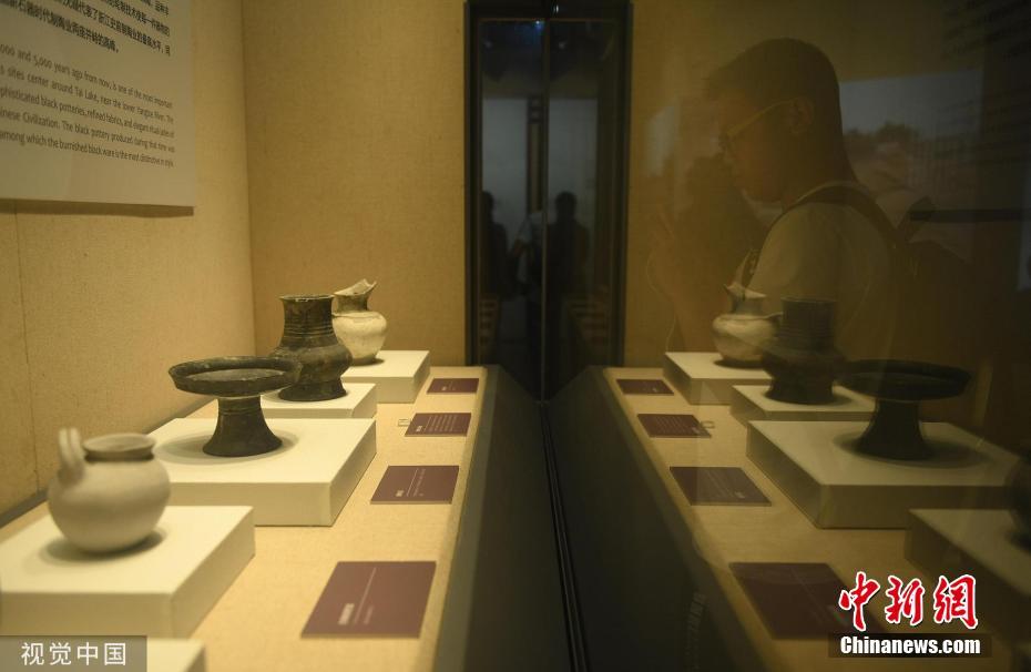 - 市民参观距今约5000年历史的良渚陶器。图片来源:视觉中国