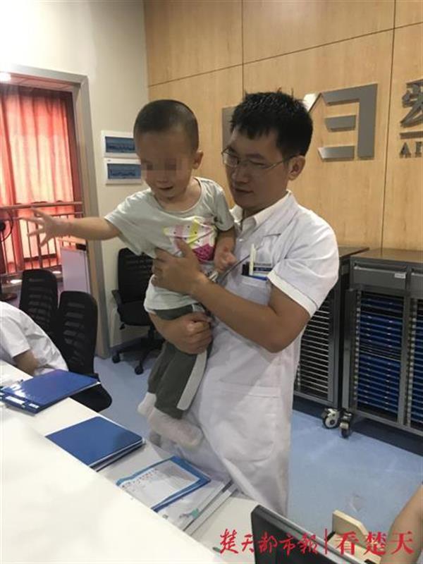 上周六晚上8:22分,一阵焦急的声音打破了平静的夜晚,“医生,快来看看我的孩子...”汉阳爱尔眼科医院1F大厅里,一位焦急的母亲抱着2岁大的儿子冲进了医生诊室,“他的眼睛被牙签戳了,一直喊疼、哭个不停,医生快来看看...”汉阳爱尔眼科医院王斌是当晚的值班医生,看到这种情况,他连忙上前想检查孩子的情况,岂料孩子一看到他哭闹得更厉害了,一直往妈妈怀里钻,嘴里还一直哭喊着:“不要...医生...不要打针...”根本无法进行检查,“他从小就怕穿白大褂的医生...这可怎么办...”孩子的母亲说。听到这句话,王斌医生立刻脱掉了自己的白大褂,并顺手拿起手边的一个女医生的黄色太阳镜戴上,耐心地哄道:“没有医生,没有医生,我是你的好朋友小黄人呀,我给你看看,眼睛就不疼了...”经过安抚,孩子的情绪渐渐稳定下来,顺利接受检查。