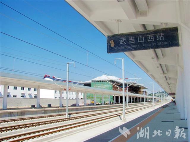 武当山西站位于丹江口市六里坪镇,距武当山风景区约10公里,站房面积12000平方米。汉十高铁在十堰设三站,分别为丹江口南站、武当山西站和十堰北站。
