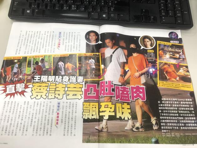 据《时报周刊》报道,王阳明、蔡诗芸6月27日晚间一起去吃寿喜烧,一直到晚上10点多才起身准备回家。不过女方站起来的时候是以孕妇般双腿微开又撑著椅子的姿势,走路时也都双手插腰走得缓慢,原本平均需要10到12分钟的一公里路程也得停下来休息2次才行。
