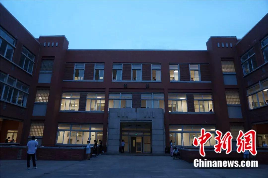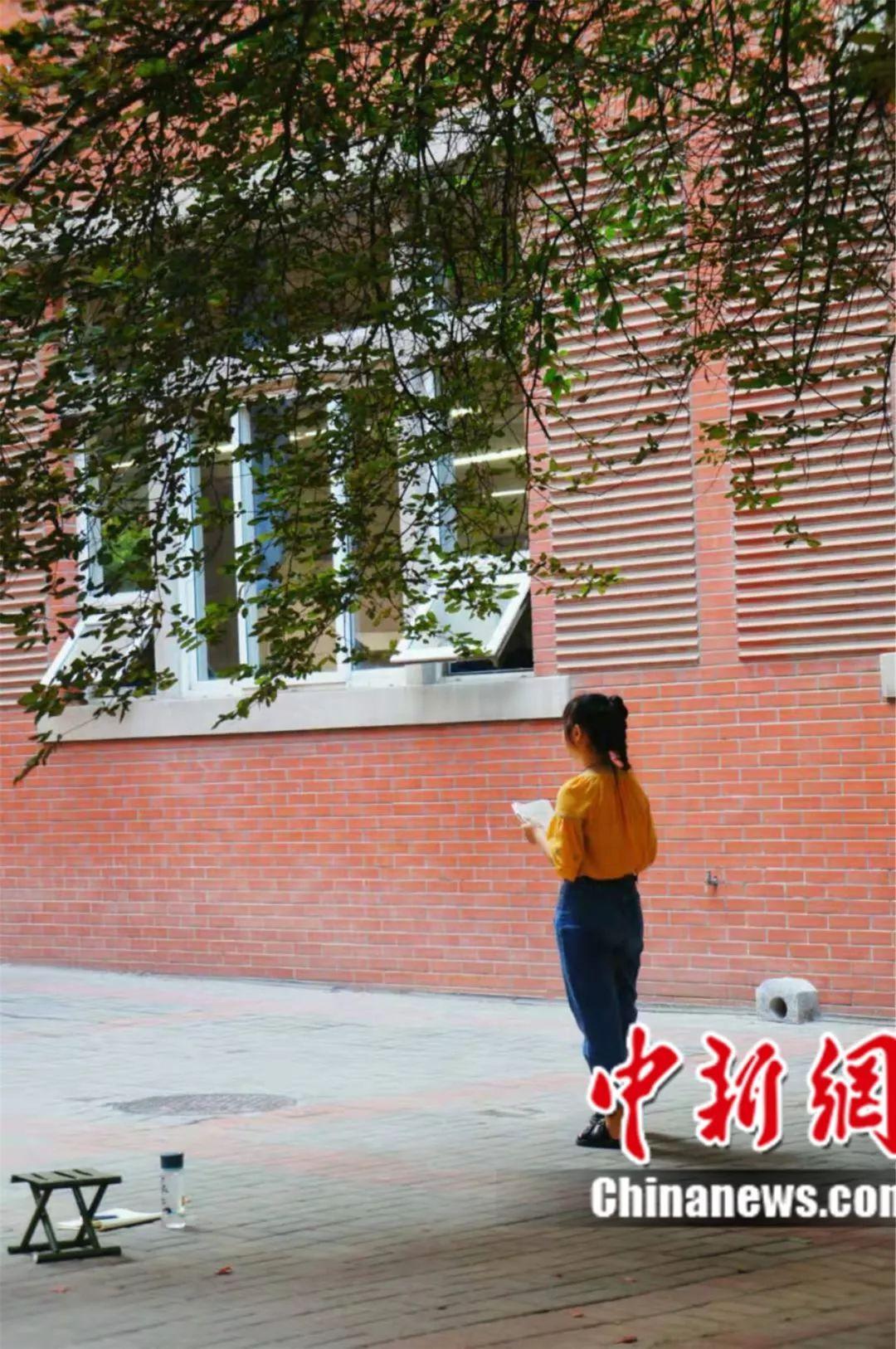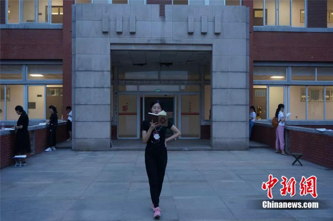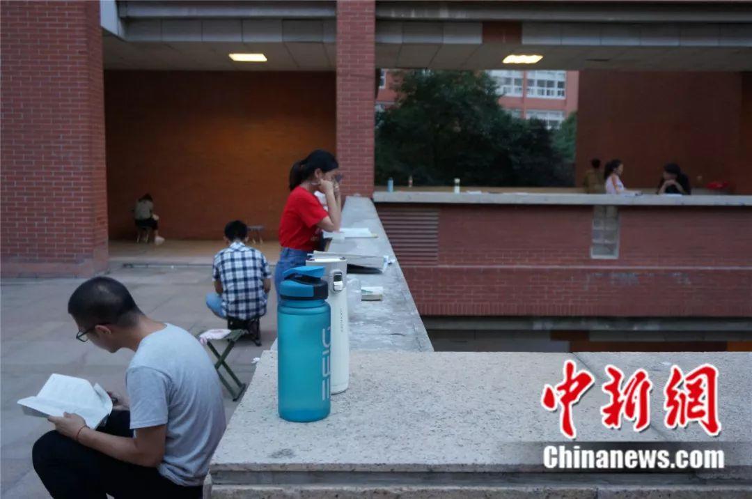 天色暗下来,备考的考生仍在室外背书。 韩章云