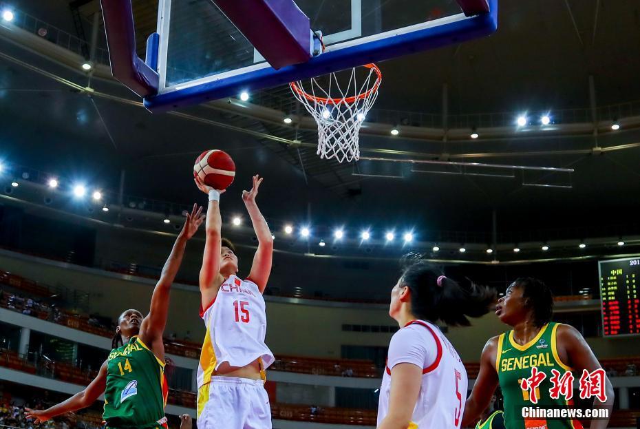 7月19日,中国女篮与塞内加尔女篮第二场热身赛在武汉体育中心体育馆展开。经过四节比拼,中国女篮以66-48击败塞内加尔队,夺得中塞热身赛两连胜。图为中国女篮10号潘臻琦(白衣)篮下强攻。 中新社记者 张畅 摄