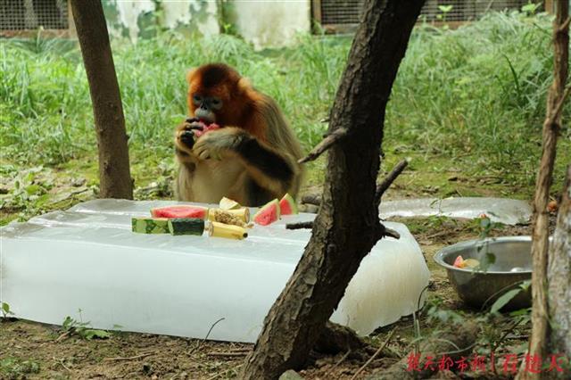 楚天都市报7月21日讯(记者陈希 通讯员陈立云 涂叶倩)刚过去的双休,武汉进入“烧烤模式”,武汉动物园动物们的消暑凉方花样多多:大冰块、遮阳网、冲凉和“魔力冰晶球”……