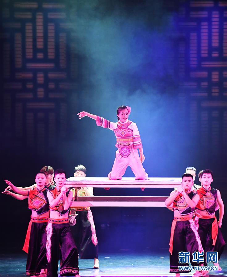 7月23日,演员在《天上黄水》歌舞剧中表演。 当日,大型土家族歌舞剧《天上黄水》在重庆市石柱土家族自治县天上黄水大剧院上演。土家族歌舞剧《天上黄水》以石柱土家啰儿调经典代表作《太阳出来喜洋洋》为音乐主题,演绎了土家族儿女追求美好生活的故事。 新华社记者王全超摄