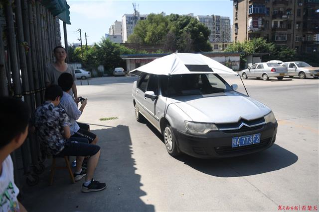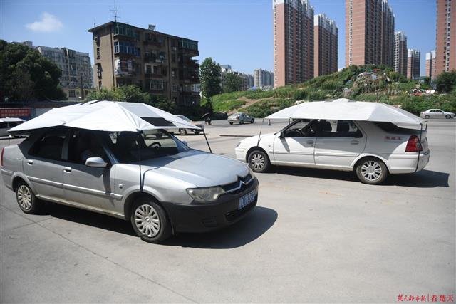 楚天都市报7月25日讯(记者刘闪 刘中灿 实习生杨燕美 视频剪辑实习生胡源愿)烈日炎炎,连驾校的教练车也打起了遮阳伞。连日气温居高不下,武汉一驾校教练车在车顶装置遮阳伞,给学员学车提供防暑。