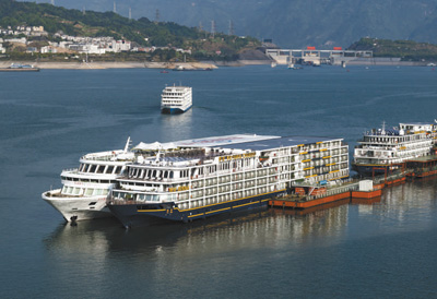 2019年4月,船舶停靠在湖北宜昌秭归港。