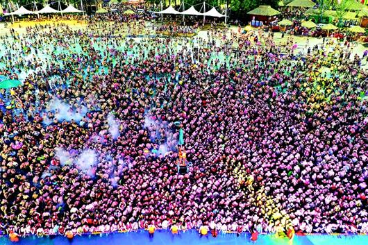 7月27日傍晚,武汉玛雅海滩水公园,近2万名市民游客在水中度夏。当日,湖北发布高温橙色预警,近期我省大部地区高温晴热持续,局部地区极端高温将达38℃-40℃。(湖北日报全媒记者李溪摄)