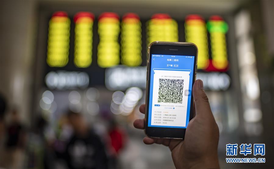 - 旅客展示通过铁路12306手机客户端生成的乘车二维码(7月30日摄)。 中国铁路昆明局集团有限公司宣布,自7月30日起,昆明南至大理、昆明南至丽江动车全面试行电子客票。购买电子客票后,车站不再出具纸质车票,乘客可刷有效身份证件原件或铁路12306手机客户端生成的二维码通过闸机检票进出站。 新华社记者 江文耀 摄