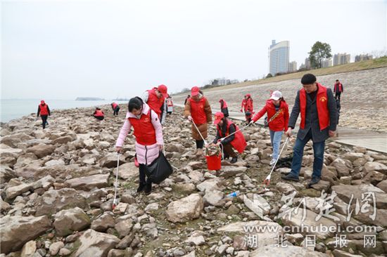 枝江市水利和湖泊局组织志愿者到江边清理垃圾。 枝江市委宣传部 供图