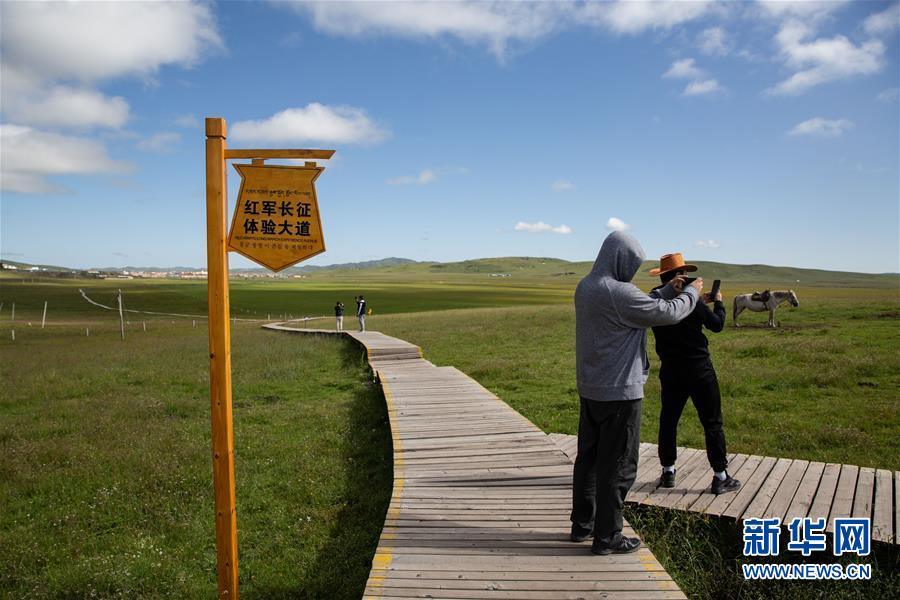 这是7月30日在四川省红原县日干乔湿地拍摄的红军过草地纪念碑(无人机拍摄)。新华社发(王曦 摄)