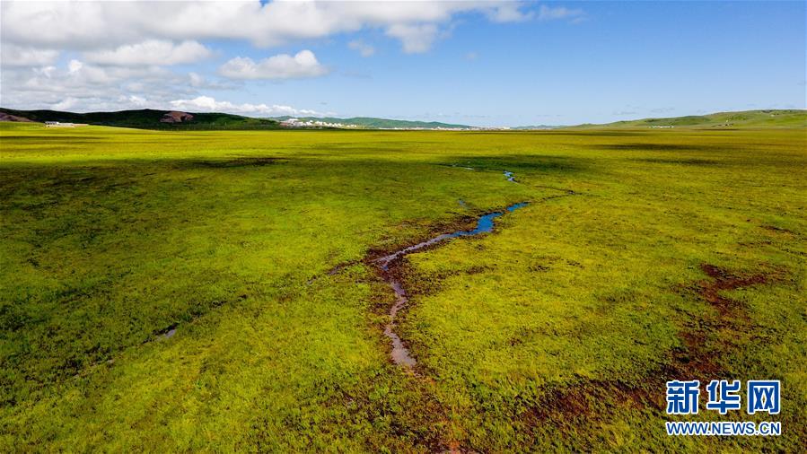 四川省红原县日干乔湿地里形成的小沟(7月30日无人机拍摄)。新华社发(王曦 摄)