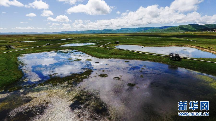 四川省红原县日干乔湿地里的小湖泊(7月30日无人机拍摄)。新华社发(王曦 摄)