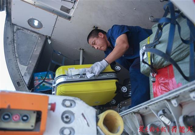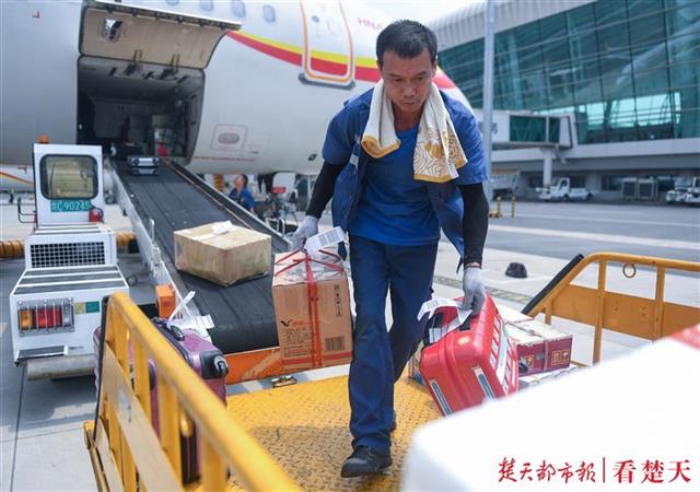 楚天都市报8月7日讯(记者石倩 摄影记者刘中灿 通讯员李军 赵湘云 实习生 周雅倩 彭紫胭)正值暑运高峰期,武汉天河机场又是一番忙碌景象。也许,您每年都有几次“说走就走”的旅行,却并不了解那些为您航班出行提供保障的人。机场行李装卸工就是其中一位默默付出的人。今天,楚天都市报记者跟随一位装卸工,体验他们暑运中繁忙的一天。