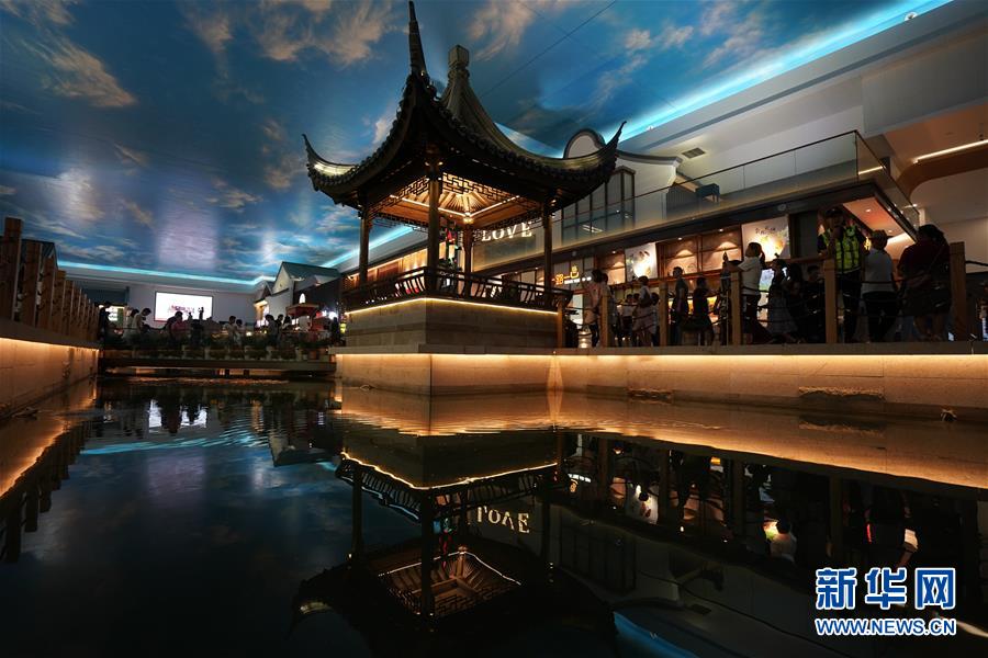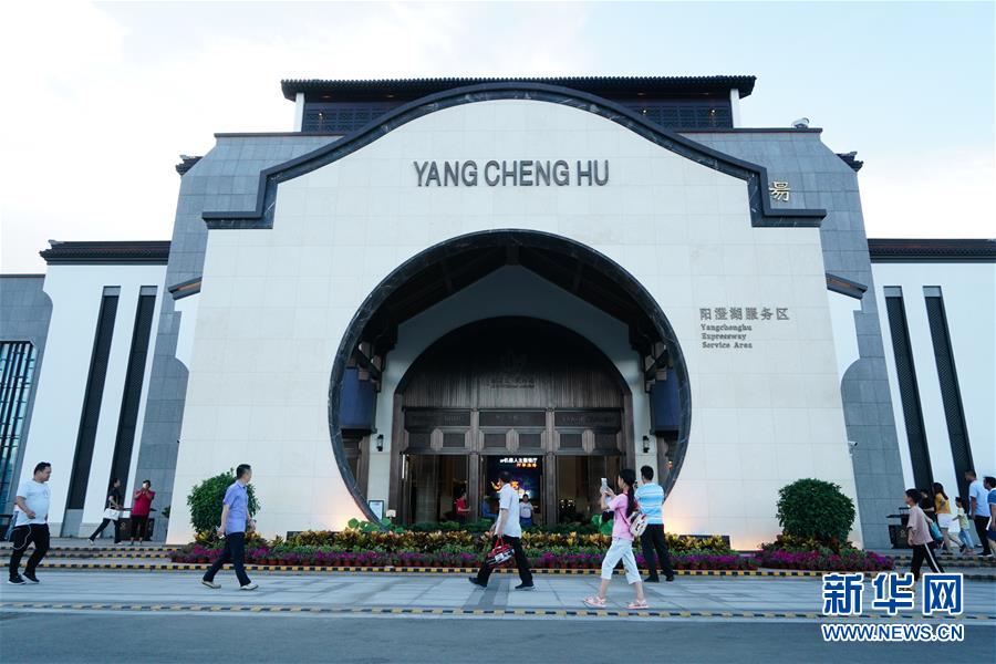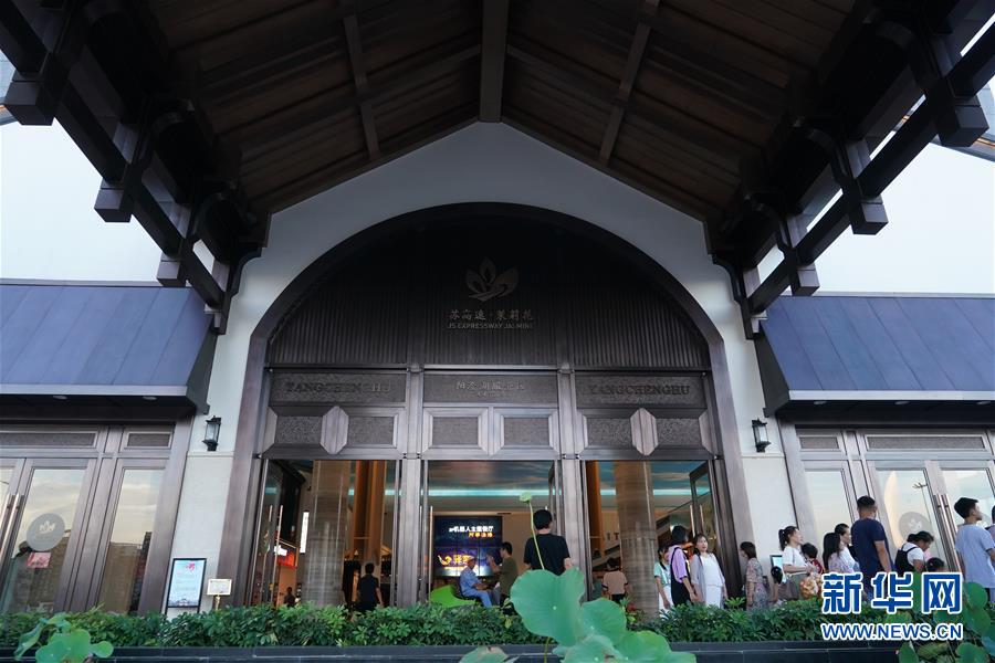 沪宁高速公路阳澄湖服务区位于江苏苏州工业园区唯亭镇,2019年5月完成升级改造,通过大型水景、粉墙黛瓦、圆形拱门等元素还原“诗画江南”意境,让旅客舒适度和体验感得到大幅提升,成为远近闻名的“网红打卡地”。 新华社记者 季春鹏 摄