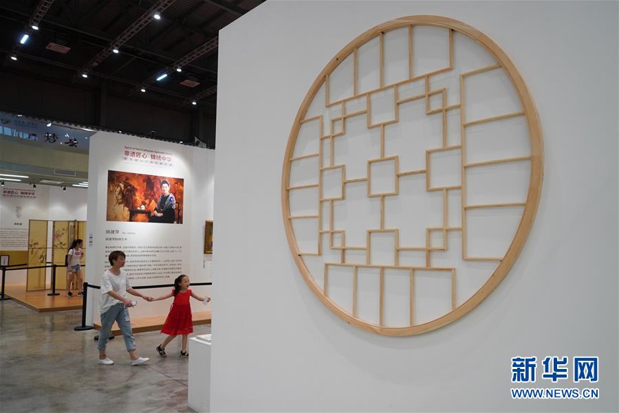 旅客在沪宁高速公路阳澄湖服务区“非遗馆”参观展览(8月8日摄)。新华社记者 季春鹏 摄