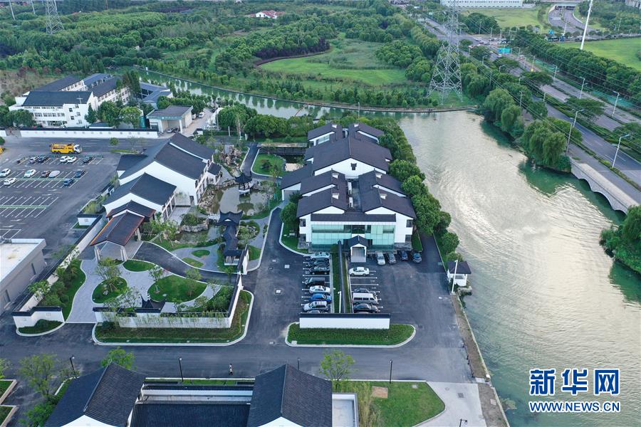 8月8日无人机航拍的沪宁高速公路阳澄湖服务区园林景致。新华社记者 季春鹏 摄