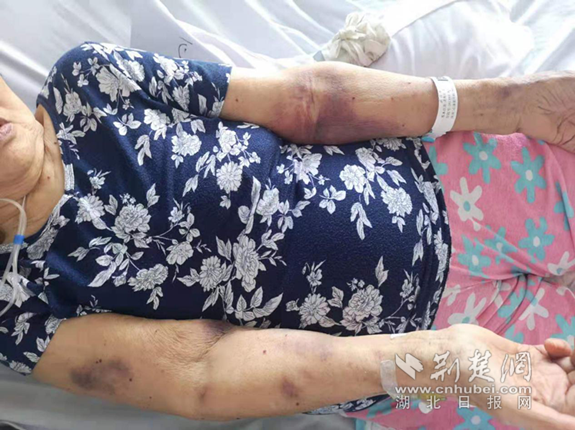 图:华法林过量,导致皮下组织出血。(摄影 谯玲玲)