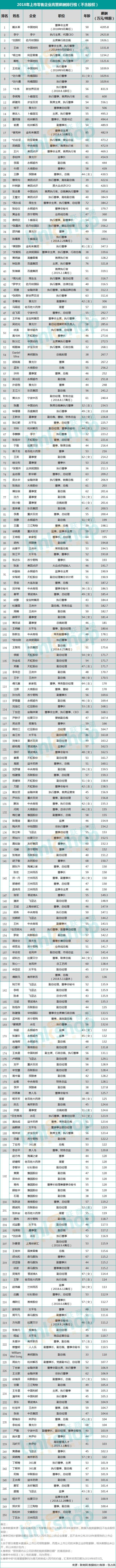 251位上榜高管中,年龄由27至85岁不等。年纪最大的是85岁的金利来集团集团主席曾宪梓,他2018年的薪酬为482.9万元;年纪最小的是中国地利(前人和商业)的行政总裁戴彬,年仅27岁的他年薪就已高达1121.6万元,据悉,戴彬为前中国地利董事会主席戴永革之子。
