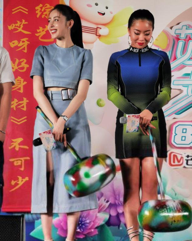 近日,张天爱王菊亮相减肥健身节目活动现场,二人同台虽然肤色差别明显,但是各有各的美,现场张天爱转起呼啦圈,王菊则玩起杠铃。