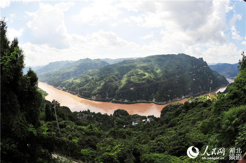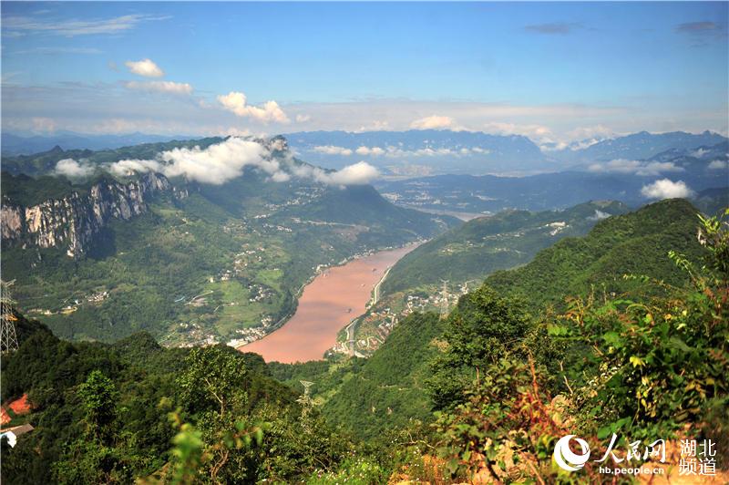 - 人民网宜昌8月14日电 近日,在湖北省宜昌市夷陵区乐天溪镇王家坪村金刚山、陈家埫等地,俯瞰长江西陵峡,翠绿青山间,秀美峡江呈现如画风景,美不胜收。