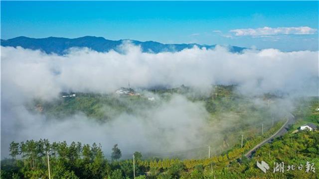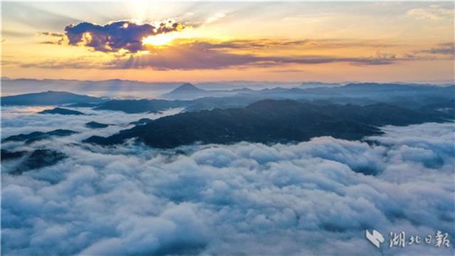 8月13日晨,在竹溪县县河镇马鹿山航拍的无际云海仙境。