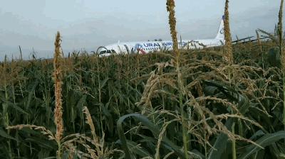 8月15日,俄罗斯乌拉尔航空公司一架客机迫降在莫斯科附近茹科夫斯基机场旁的农田里。新华社/美联