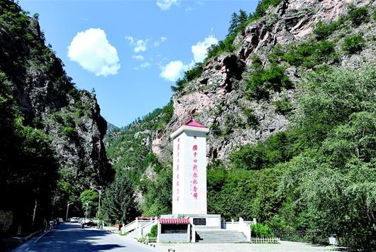 图为:8月15日拍摄的腊子口战役纪念碑,后面就是天险腊子口。