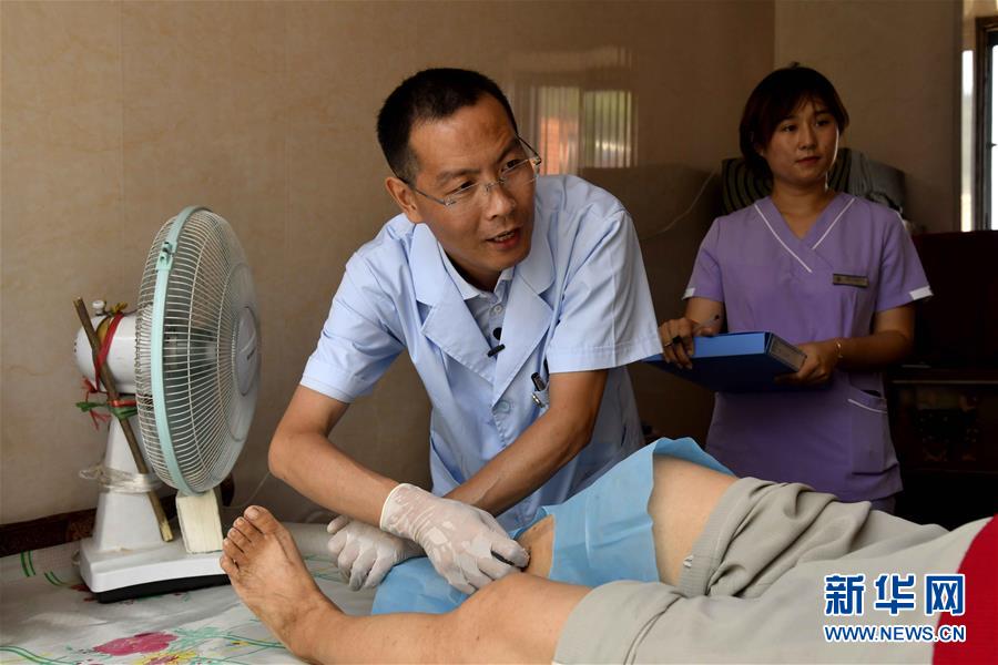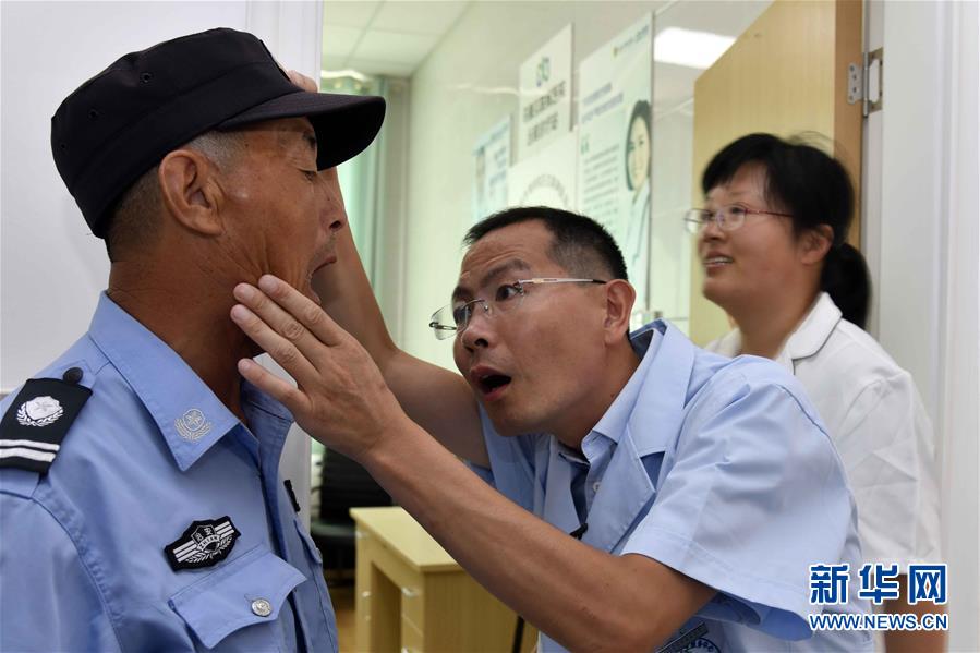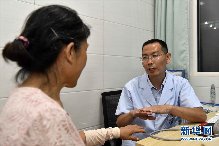 8月16日,在青岛市西海岸新区灵山岛社区卫生服务中心,周兆敬为病人看病。 新华社记者 王凯 摄