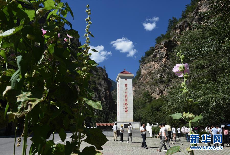 游客在腊子口战役纪念碑前参观(8月15日摄)。新华社记者 罗晓光 摄