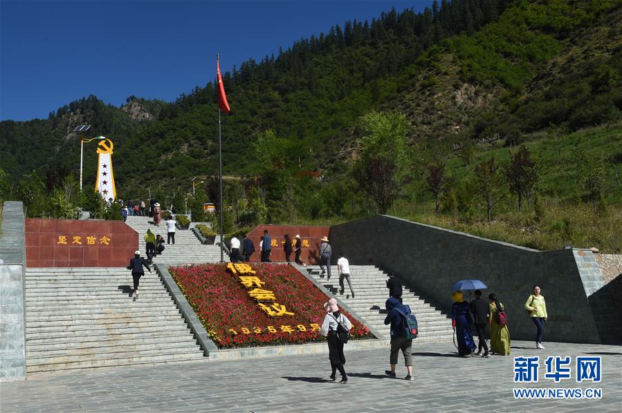 游客在俄界会议旧址参观(8月15日摄)。新华社记者 罗晓光 摄