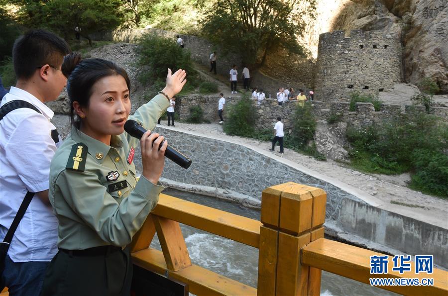 讲解员在腊子口战役旧址介绍当年战斗情况(8月15日摄)。新华社记者 罗晓光 摄