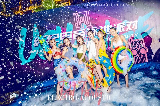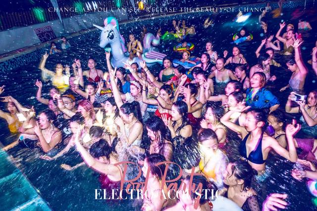 晚上7点半,活力激情的纤纪户外网红电音泳池趴盛大开启。