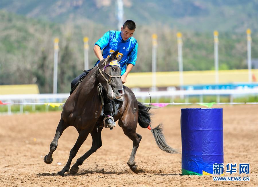 8月20日,骑手在“蒙古马”传统技巧表演中展示骑马绕桶。 当日,“蒙古马”传统技巧表演在呼和浩特市内蒙古少数民族群众文化体育运动中心举行,此次表演共包括骑马穿桩、射箭、骑马拾哈达、骑马绕桶等多个传统马术技巧项目。 新华社记者 彭源 摄