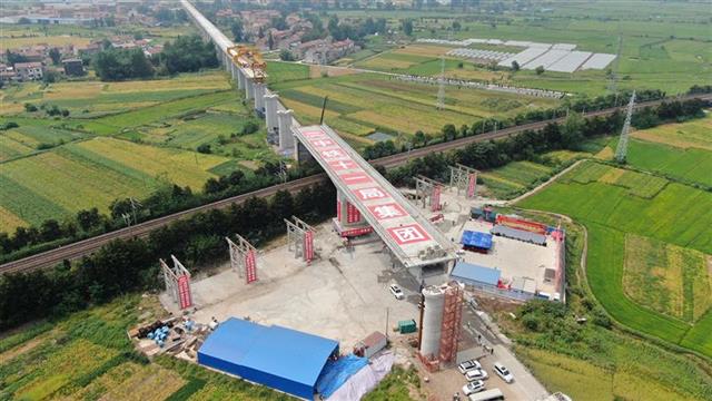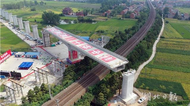 安九高铁湖北段长江特大桥跨京九铁路转体成功