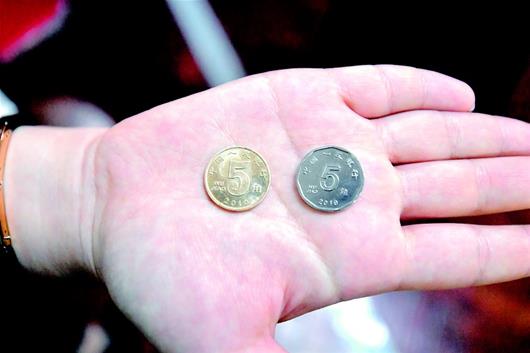 图为:新旧版5角硬币对比