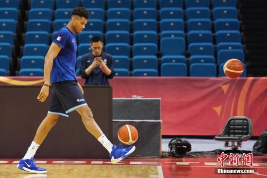 资料图;8月30日,美国NBA球星、希腊篮球队队员、“字母哥”扬尼斯·安特托昆博参加赛前训练。当日,2019国际篮联篮球世界杯小组赛南京赛区迎来开赛倒计时,希腊、巴西、黑山三支国家队走进南京青奥体育公园体育馆进行赛前官方训练。中新社记者 泱波 摄