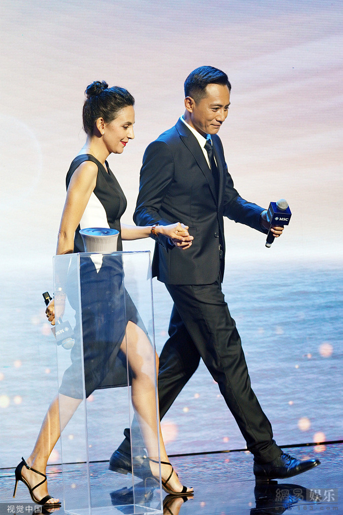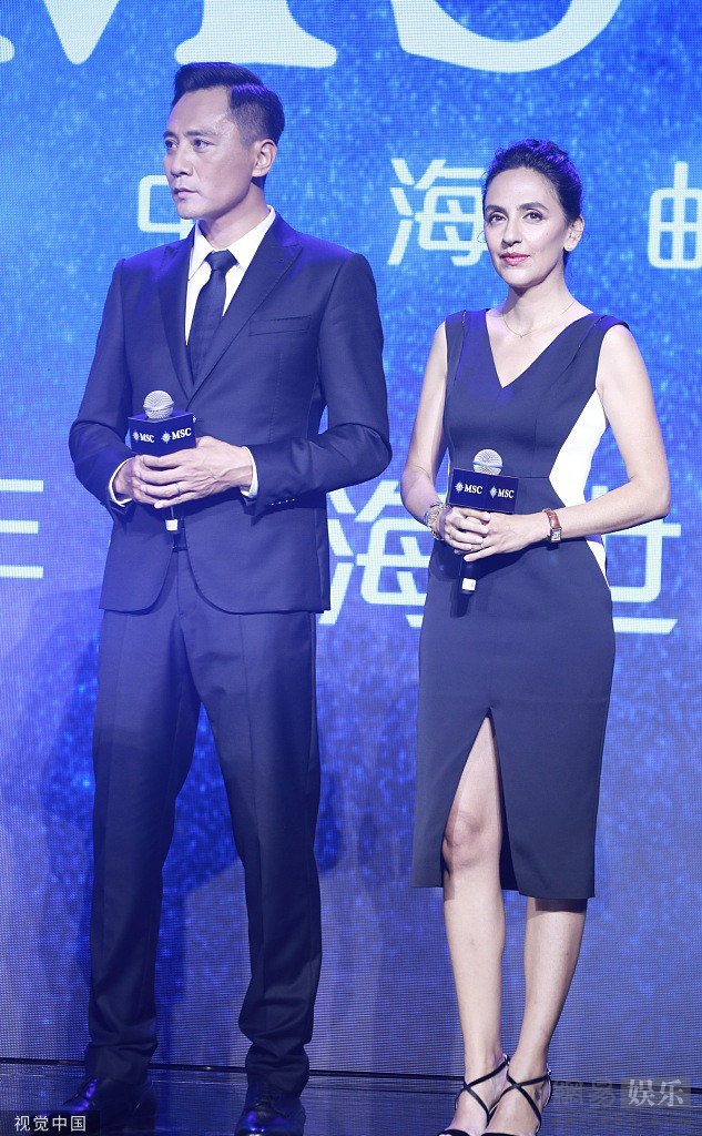 2019年9月3日,上海,刘烨和妻子安娜出席活动。刘烨大背头造型西装革履诠释“硬汉派帅气”, 安娜穿黑白开叉裙优雅知性,甜蜜恩爱。