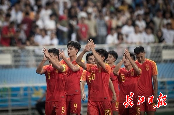 - 图为中国国奥队队员向球迷致意。 记者 任勇 摄