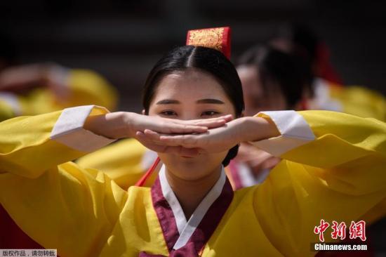 资料图:韩国首尔年轻人穿着传统服装参加传统成人仪式。