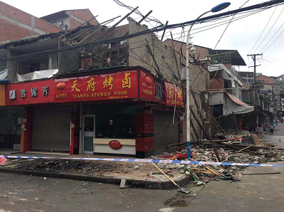 内江市全安镇受灾区域已经拉起警戒线。