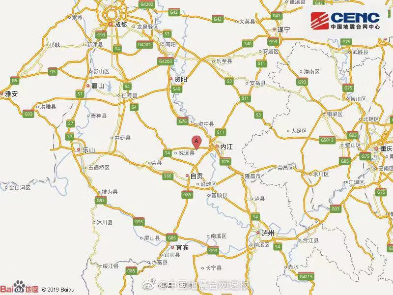 8日6时42分在四川内江市威远县(北纬29.55度,东经104.79度)发生5.4级地震,震源深度10千米。四川成都、宜宾、德阳等地震感强烈。其他相关情况还在进一步统计中。