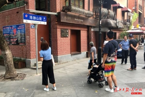 游客董女士用手机拍下珞珈山街路名牌后说,她们全家来汉旅游,在网上看到珞珈山街的介绍后,专程来看看。“我觉得路名牌是历史文化的载体,很有意思。”