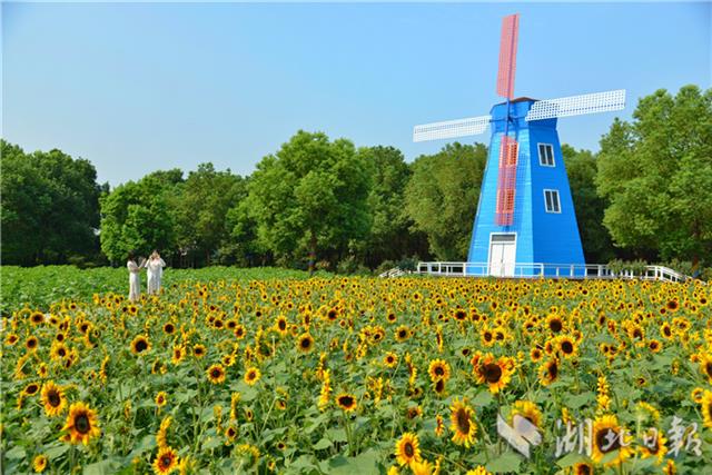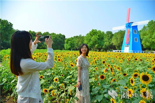 园中5万株向日葵已经陆续绽放,吸引游人前来打卡拍照。