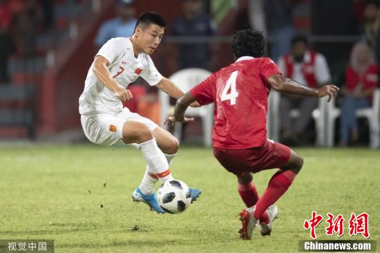 - 北京时间9月10日晚,2022年世界杯亚洲区预选赛40强赛,中国队客战5球大胜马尔代夫队。上半时李磊助攻吴曦首开记录,随后武磊扩大比分,下半场杨旭点射破门,归化球员艾克森梅开二度,最终国足以5:0的比分取得开门红。图为武磊带球突破过人。图片来源:视觉中国