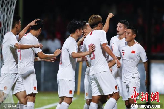 - 北京时间9月10日晚,2022年世界杯亚洲区预选赛40强赛,中国队客战5球大胜马尔代夫队。上半时李磊助攻吴曦首开记录,随后武磊扩大比分,下半场杨旭点射破门,归化球员艾克森梅开二度,最终国足以5:0的比分取得开门红。图为中国队球员庆祝进球。图片来源:视觉中国