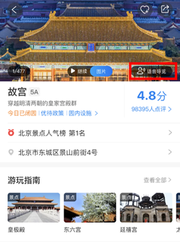 目前,携程是首家提供一站式语音导览服务的OTA,游客在携程APP内搜索某一景区,就可在景区详情页中获取该景区的语音导览功能,无需再跳转其他APP。与此同时,每个景区都可任选3条免费试听,支付成功后,语音内容60天内均有效。