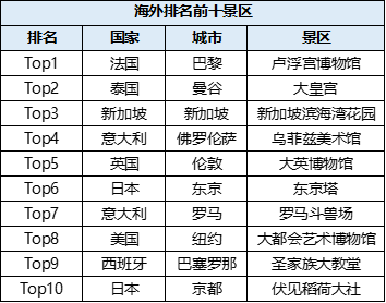 根据语音导览订单数据显示,2019年截至到目前,巴黎卢浮宫、曼谷大皇宫、新加坡滨海湾花园、佛罗伦萨乌菲兹美术馆、伦敦大英博物馆、东京塔、罗马斗兽场、纽约大都会艺术博物馆、巴塞罗那圣家族大教堂、京都伏见稻荷大社为“语音导览”使用人数最多的海外景区。